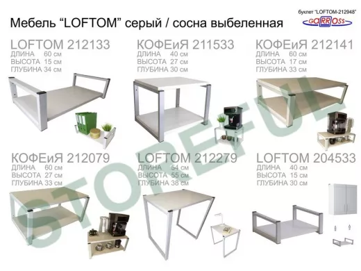 В корзину Купить в 1 клик Столик приставной, серый, 55см "LOFTOM 212841" прикроватный стол журнальный с полкой, сосна