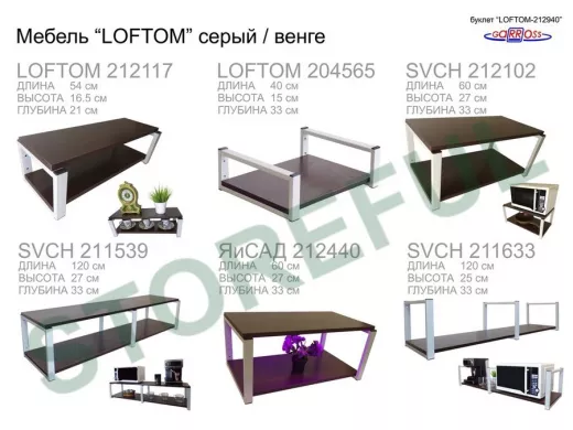 В корзину Купить в 1 клик Столик приставной, серый, 55см "LOFTOM 212957" прикроватный стол журнальный с полкой, венге