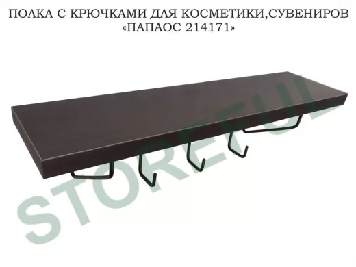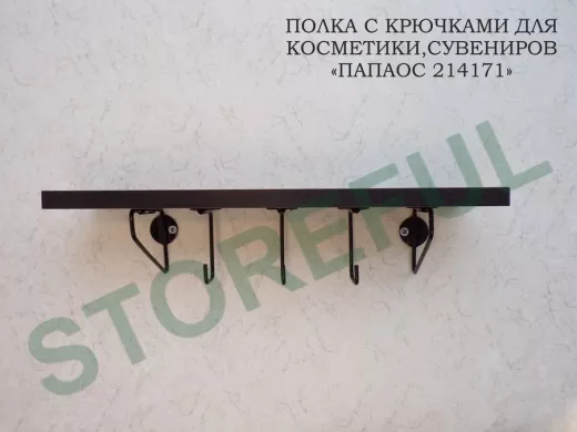 Ключница, полка с крючками в прихожую 40х10 см, высота 9 см, черный "ПАПАОС 214171" венге