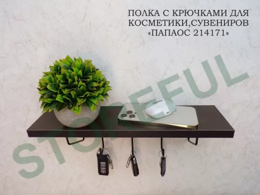 В корзину Купить в 1 клик Ключница, полка с крючками в прихожую 40х10 см, высота 9 см, черный "ПАПАОС 214171" венге