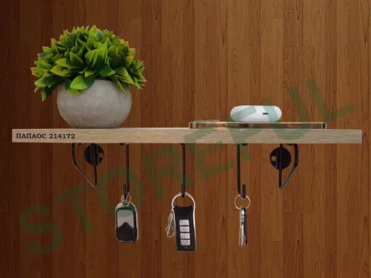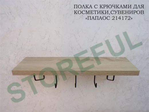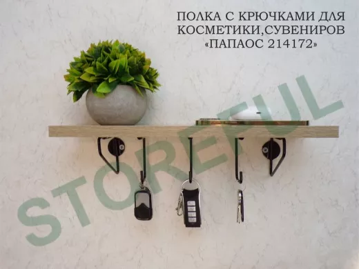 В корзину Купить в 1 клик Ключница, полка с крючками в прихожую 40х10 см, высота 9 см, черный "ПАПАОС 214172" дуб сонома