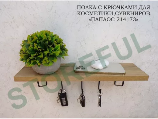 В корзину Купить в 1 клик Ключница, полка с крючками в прихожую 40х10 см, высота 9 см, черный "ПАПАОС 214173" дуб вотан