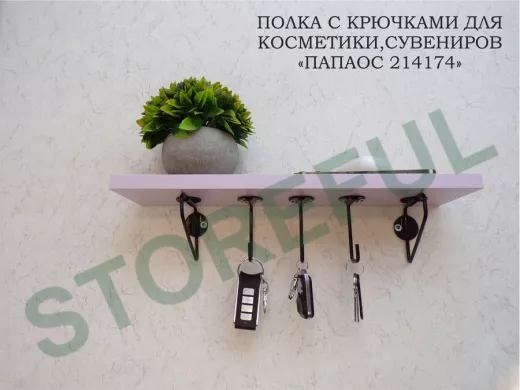 В корзину Купить в 1 клик Ключница, полка с крючками в прихожую 40х10 см, высота 9 см, черный "ПАПАОС 214174" лаванда