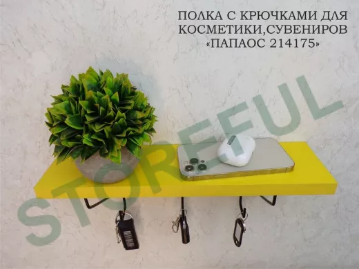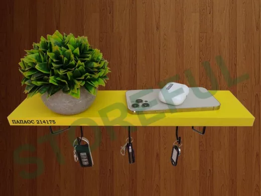 В корзину Купить в 1 клик Ключница, полка с крючками в прихожую 40х10 см, высота 9 см, черный "ПАПАОС 214175" желтый