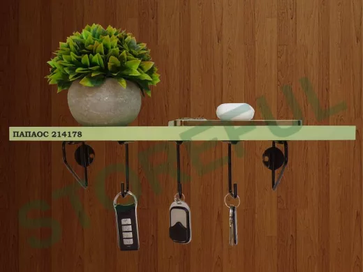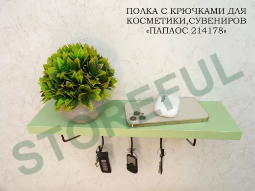В корзину Купить в 1 клик Ключница, полка с крючками в прихожую 40х10 см, высота 9 см, черный "ПАПАОС 214178" салатовый