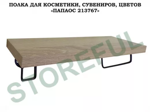 Полка для косметики, сувениров, цветов, 30х10 см, высота 9 см, черный "ПАПАОС 213767" дуб сонома