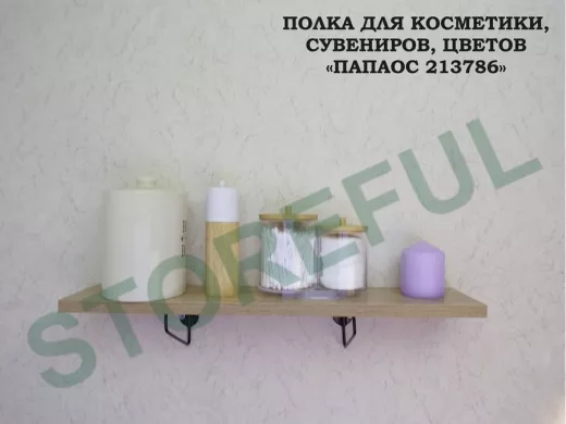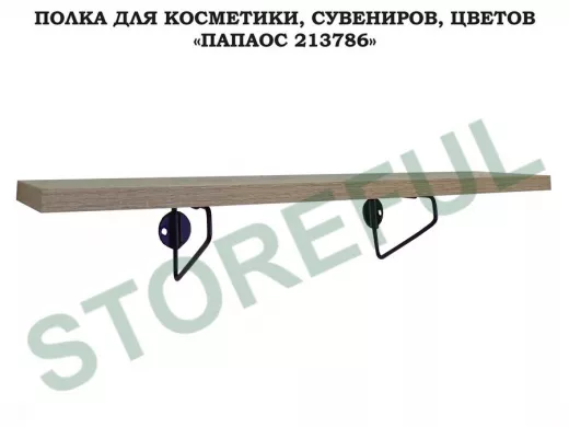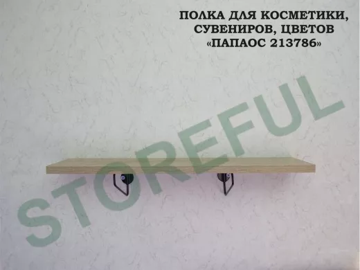 Полка для косметики, сувениров, цветов, 54х10 см, высота 9 см, черный "ПАПАОС 213786" дуб сонома