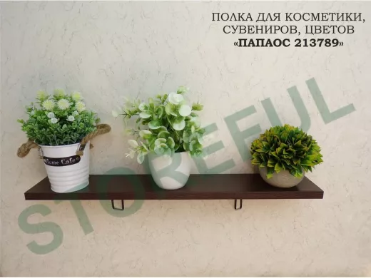 В корзину Купить в 1 клик Полка для косметики, сувениров, цветов, 60х10 см, высота 9 см, черный "ПАПАОС 213789" венге