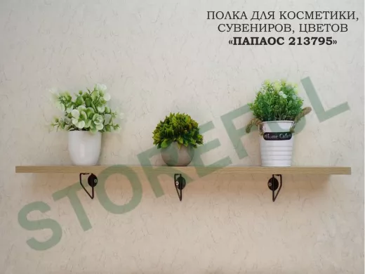 • Стильная полка в лофт-стиле. Простая конструкция изделия, позволяет добиться высокой надежности, а её минималистичный дизайн впишется абсолютно в любой интерьер. Полка идеально подойдет для косметики, сувениров, цветов и  декоративных мелочей.