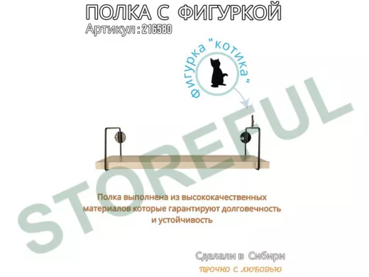 В корзину Купить в 1 клик Полка с фигуркой котика "ABILOVE-216580" размер 10х40см ,черный ,сосна выбеленная