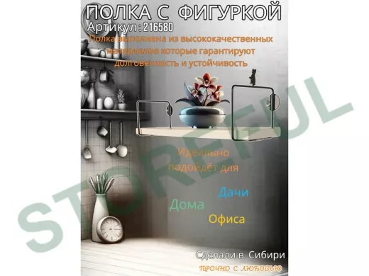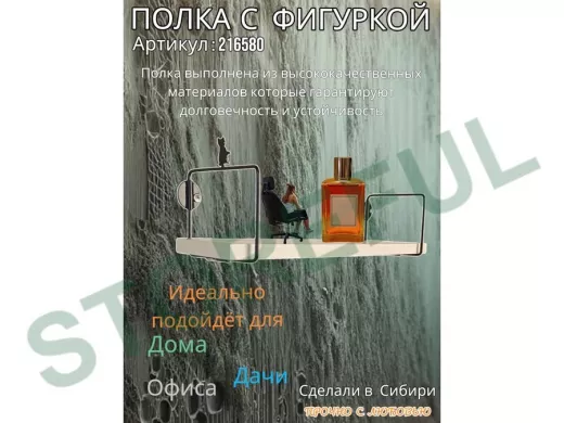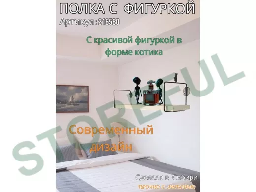 • Интересная полка с фигуркой, позволит разнообразить интерьер, сделать его непохожим, уникальным, запоминающимся.