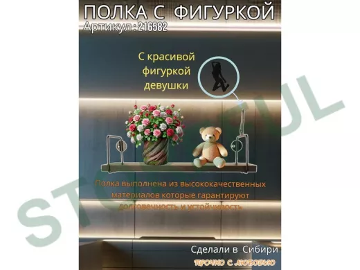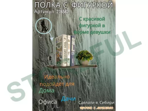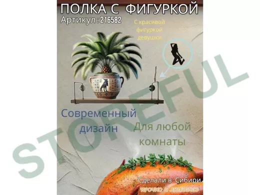 • Интересная полка с фигуркой, позволит разнообразить интерьер, сделать его непохожим, уникальным, запоминающимся.