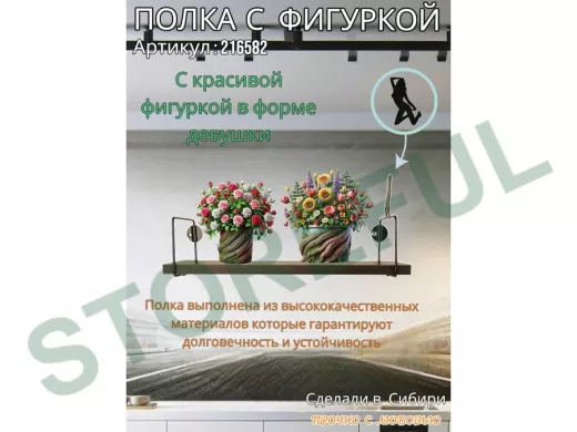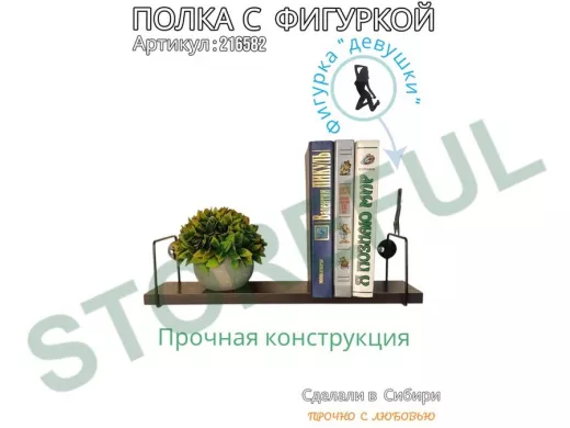 В корзину Купить в 1 клик Полка с фигуркой девушки "ABILOVE-216582" размер 10х40см ,черный ,венге