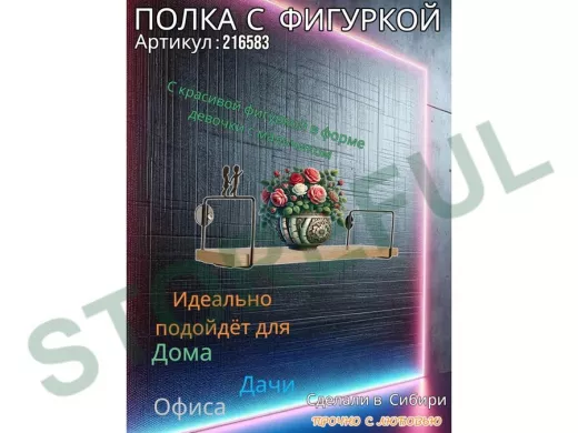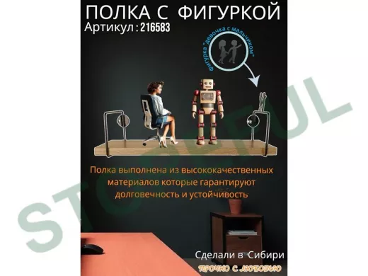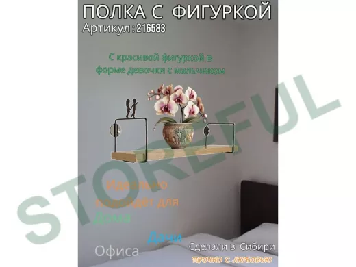 • Интересная полка с фигуркой, позволит разнообразить интерьер, сделать его непохожим, уникальным, запоминающимся.