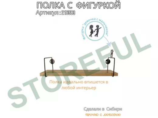 В корзину Купить в 1 клик Полка с фигуркой девочки с мальчиком "ABILOVE-216583" размер 10х40см ,черный ,дуб сонома
