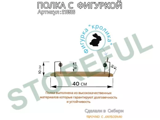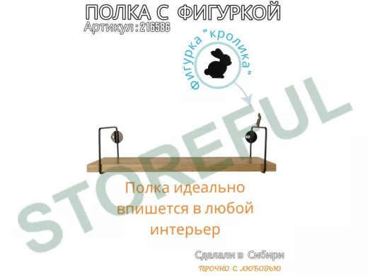 В корзину Купить в 1 клик Полка с фигуркой кролика "ABILOVE-216586" размер 10х40см ,черный ,дуб сонома
