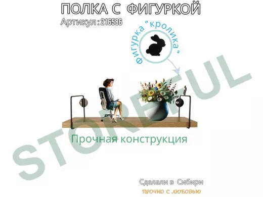 • Интересная полка с фигуркой, позволит разнообразить интерьер, сделать его непохожим, уникальным, запоминающимся.