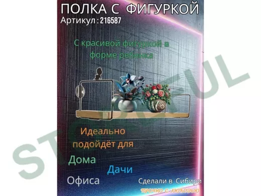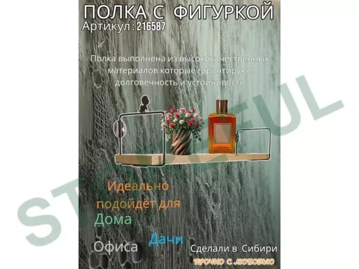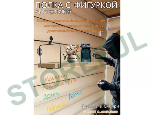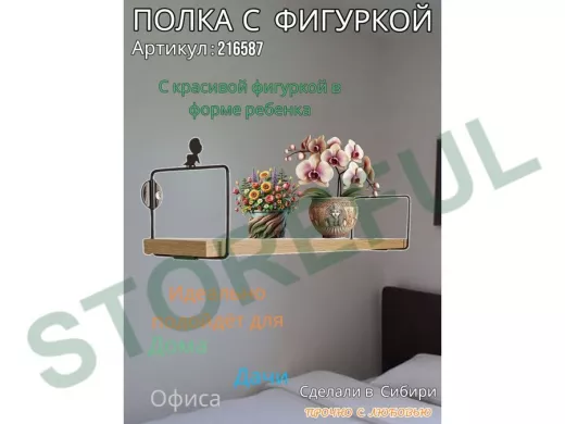• Интересная полка с фигуркой, позволит разнообразить интерьер, сделать его непохожим, уникальным, запоминающимся.