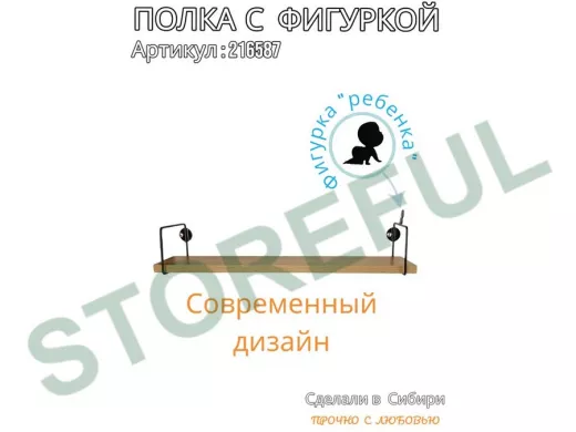 В корзину Купить в 1 клик Полка с фигуркой ребенка "ABILOVE-216587" размер 10х60см ,черный ,дуб сонома