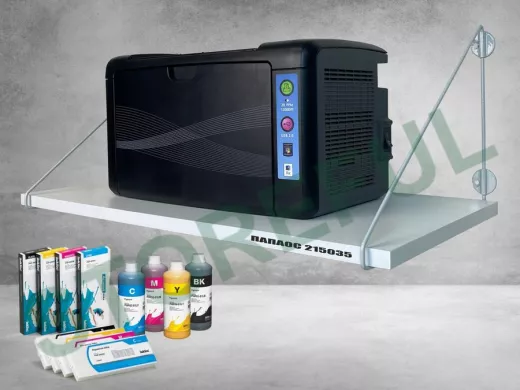 • Полка надежно крепится к стене при помощи анкеров или шурупов с дюбелями, на ней можно разместить принтер, сканер, МФУ и многое другое