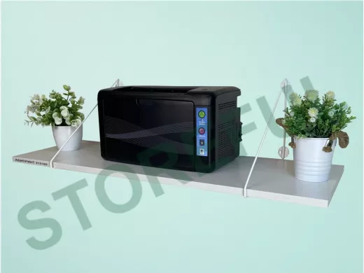 • Полка надежно крепится к стене при помощи анкеров или шурупов с дюбелями, на ней можно разместить принтер, бумагу