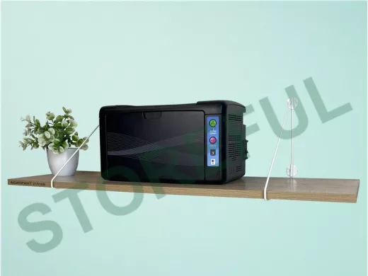 • Полка надежно крепится к стене при помощи анкеров или шурупов с дюбелями, на ней можно разместить принтер, бумагу