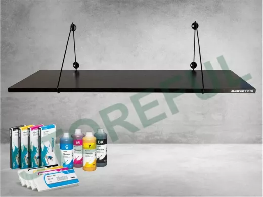 • Полка надежно крепится к стене при помощи анкеров или шурупов с дюбелями, на ней можно разместить принтер, бумагу