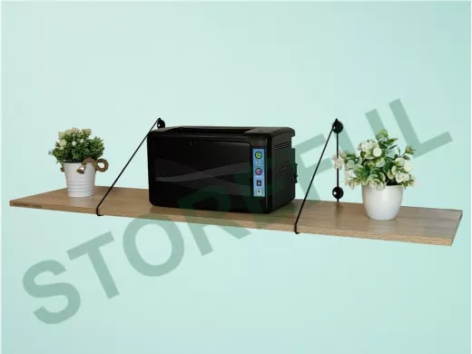 • Полка надежно крепится к стене при помощи анкеров или шурупов с дюбелями, на ней можно разместить принтер, бумагу