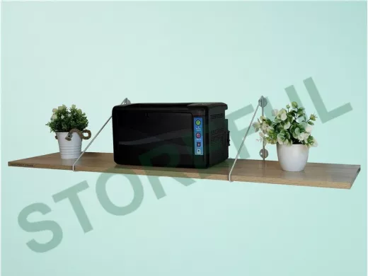 • Полка надежно крепится к стене при помощи анкеров или шурупов с дюбелями, на ней можно разместить принтер, бумагу