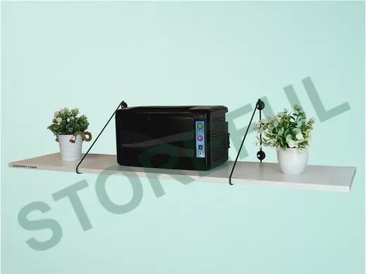 • Полка надежно крепится к стене при помощи анкеров или шурупов с дюбелями, на ней можно разместить принтер, бумагу