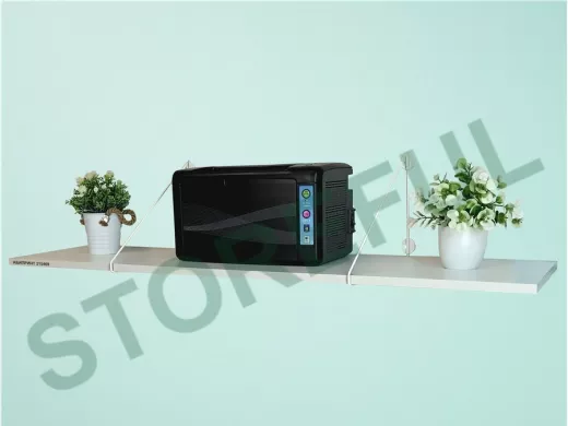 • Полка надежно крепится к стене при помощи анкеров или шурупов с дюбелями, на ней можно разместить принтер, бумагу