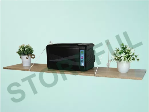 • Полка надежно крепится к стене при помощи анкеров или шурупов с дюбелями, на ней можно разместить принтер, бумагу