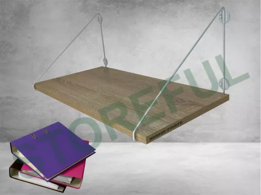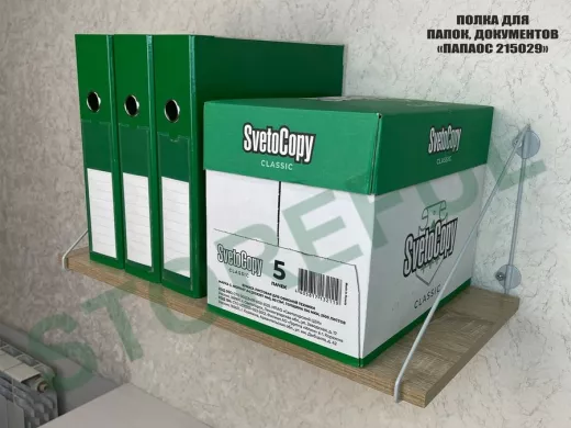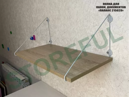 • Полка надежно крепится к стене при помощи анкеров или шурупов с дюбелями, на ней можно разместить папки, документы,бумагу и многое другое