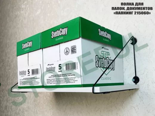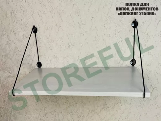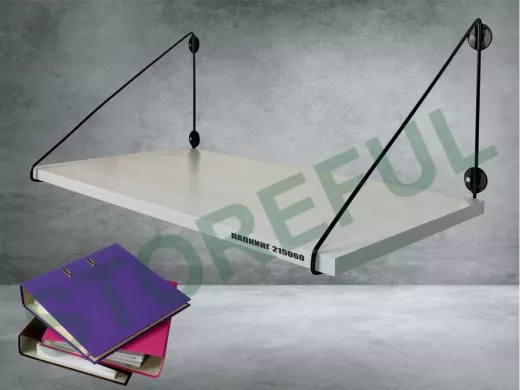• Полка надежно крепится к стене при помощи анкеров или шурупов с дюбелями, на ней можно разместить папки, документы