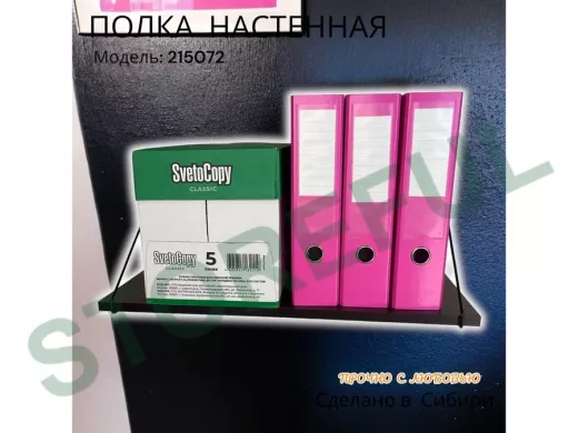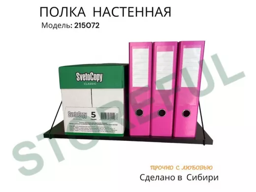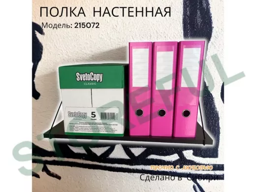 • Полка надежно крепится к стене при помощи анкеров или шурупов с дюбелями, на ней можно разместить папки, документы