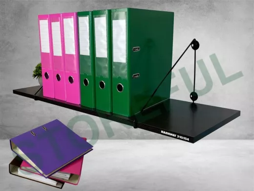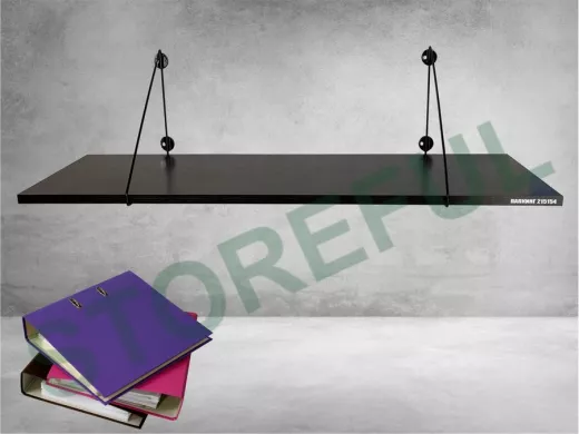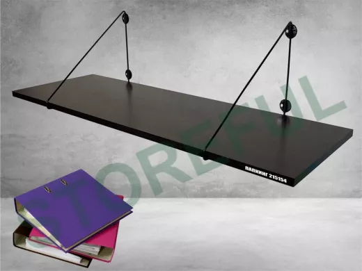 • Полка надежно крепится к стене при помощи анкеров или шурупов с дюбелями, на ней можно разместить папки, документы