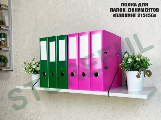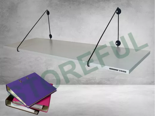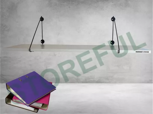• Полка надежно крепится к стене при помощи анкеров или шурупов с дюбелями, на ней можно разместить папки, документы
