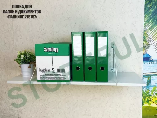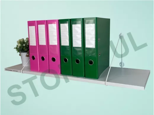 • Полка надежно крепится к стене при помощи анкеров или шурупов с дюбелями, на ней можно разместить папки, документы