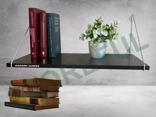 • Полка надежно крепится к стене при помощи анкеров или шурупов с дюбелями, на ней можно разместить книги, журналы, фотографии, декоративные элементы и многое другое