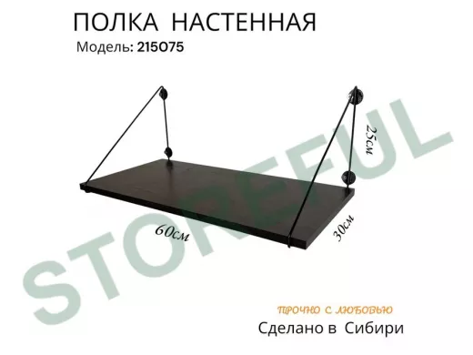 В корзину Купить в 1 клик Полка для книг "КНИГОКРЕП 215075" высота 26 см размер 60х30 см черный и венге