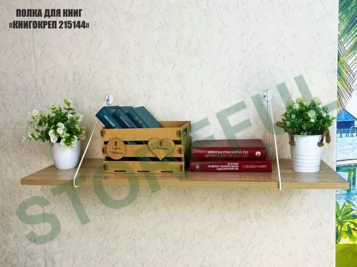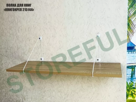 Полка для книг "КНИГОКРЕП 215144" высота 26 см размер 90х30 см белый и дуб сонома