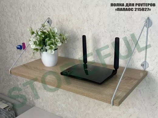 • Полка надежно крепится к стене при помощи анкеров или шурупов с дюбелями, на ней можно разместить роутер и многое другое