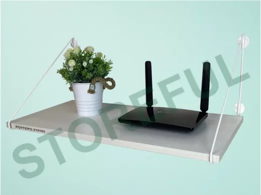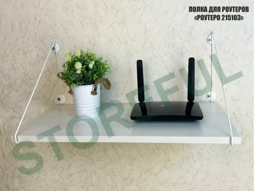 • Полка надежно крепится к стене при помощи анкеров или шурупов с дюбелями, на ней можно разместить роутер и многое другое