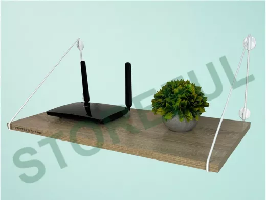 • Полка надежно крепится к стене при помощи анкеров или шурупов с дюбелями, на ней можно разместить роутер и многое другое