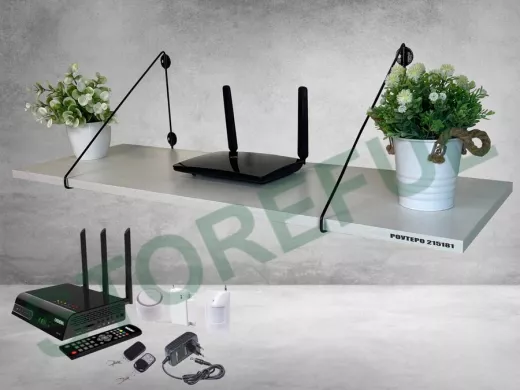 • Полка надежно крепится к стене при помощи анкеров или шурупов с дюбелями, на ней можно разместить роутер