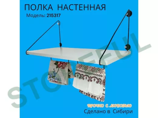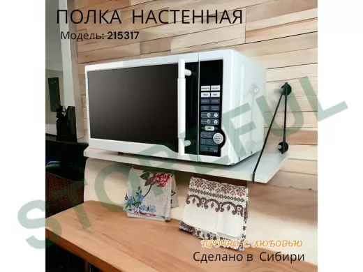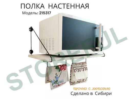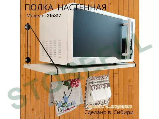 Полка для микроволновки "ПАПАОС 215317" размер 60х30 см черный и сосна выбеленная с держателями