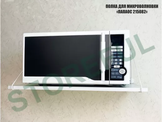 Полка для микроволновки "ПАПАОС 215082" высота 26 см размер 60х30 см белый каркас и белая шагрень