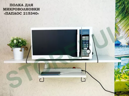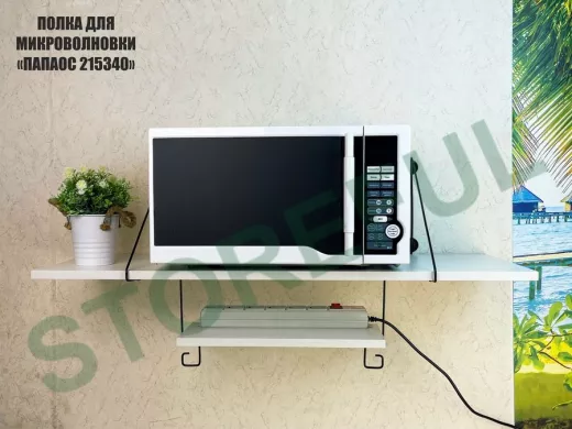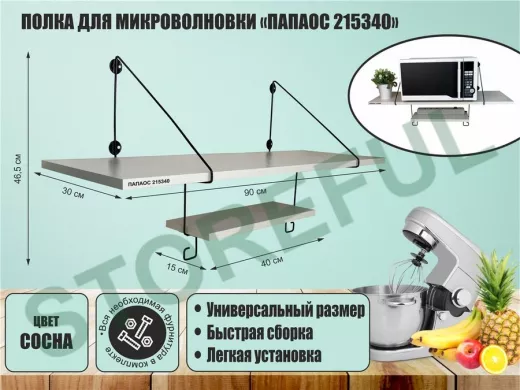 Полка для микроволновки "ПАПАОС 215340" высота 46,5 см размер 90х30 см черный и сосна с полкой