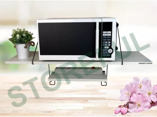 • На верхней полке можно разместить микроволновую печь или другую кухонную технику, на средней отлично "встанет" посуда, баночки под сыпучее и многое другое, а нижняя полка отлично подойдет для специй, таймера или маленьких сувениров