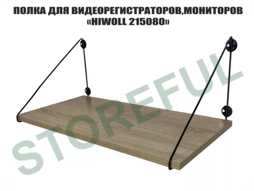 Полка для видеорегистратора и монитора "HIWOLL 215080" высота 26 см размер 60х30 см черный и дуб